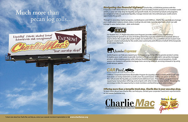 Print advertisements created for Charlie Mac. Includes series and individual advertisements.